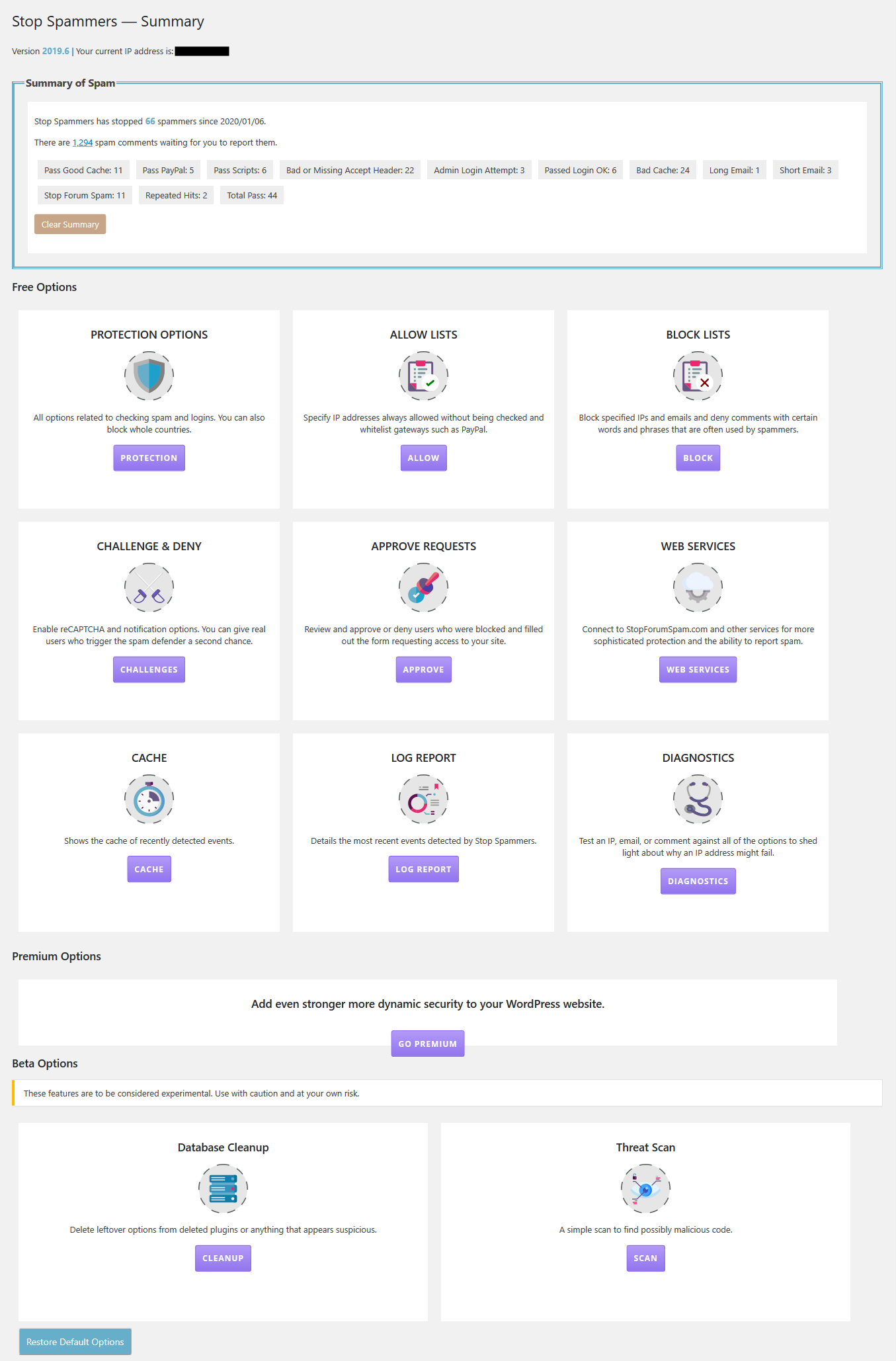 Setelah Anda menginstal dan mengaktifkan plugin Stop Spammers, Anda dapat mengakses pengaturan plugin ini dengan cara klik menu Stop Spammers > Protection Options di dashboard WordPress Anda. Di sini, Anda dapat menyesuaikan berbagai opsi dan fitur plugin ini sesuai dengan kebutuhan dan preferensi Anda.