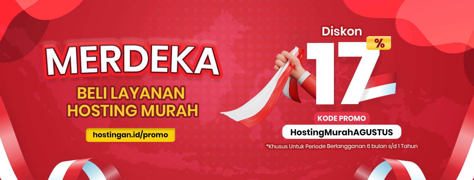 Kapan lagi beli layanan Web Hosting Murah (Hosting Termurah se Indonesia) Dapat Diskon lagi ? Hanya di Bulan Agustus saja! Nikmati Diskon 17% Untuk Layanan Hosting Murah dari Hostingan. Promo ini berlaku hanya sampai dengan tanggal 17 Agustus 2022 dan berlaku hanya untuk pelanggan baru yang belum memiliki layanan apapun di Hostingan!